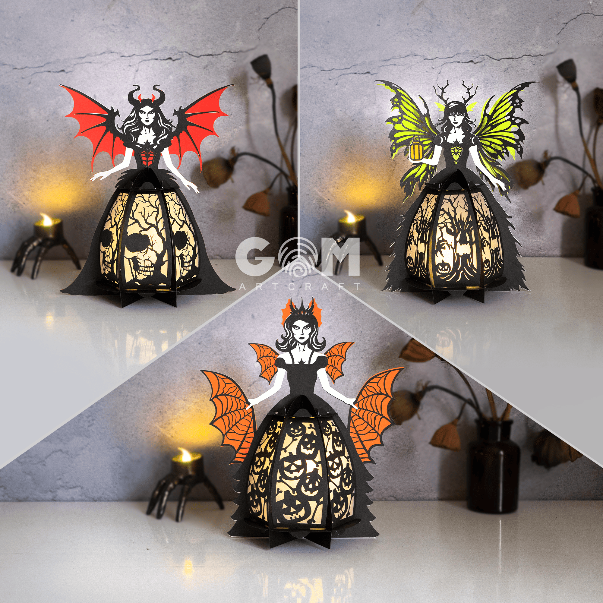 Pack 3 Witch Lantern Template SVG, DIY Halloween Lantern Paper Cut, Witch Lantern for Halloween Decoration, 3D Halloween Papercut Light Box